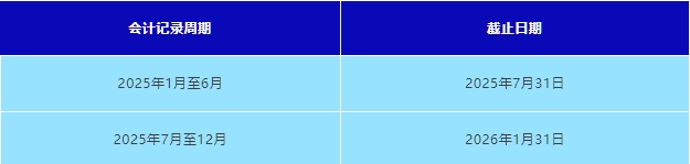 在財務年度結束后6個月內提交。大型實體和非大型非控股實體必須準備年度財務總結,并保存在其注冊辦公室。常見截止日期:
